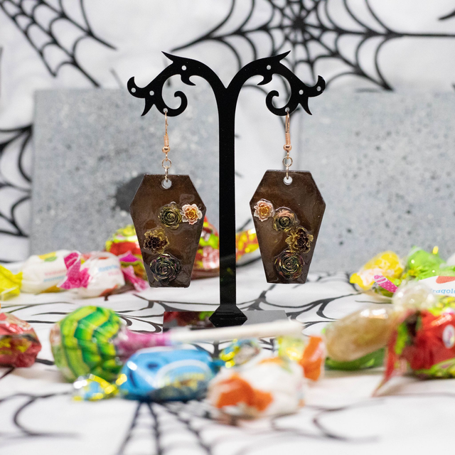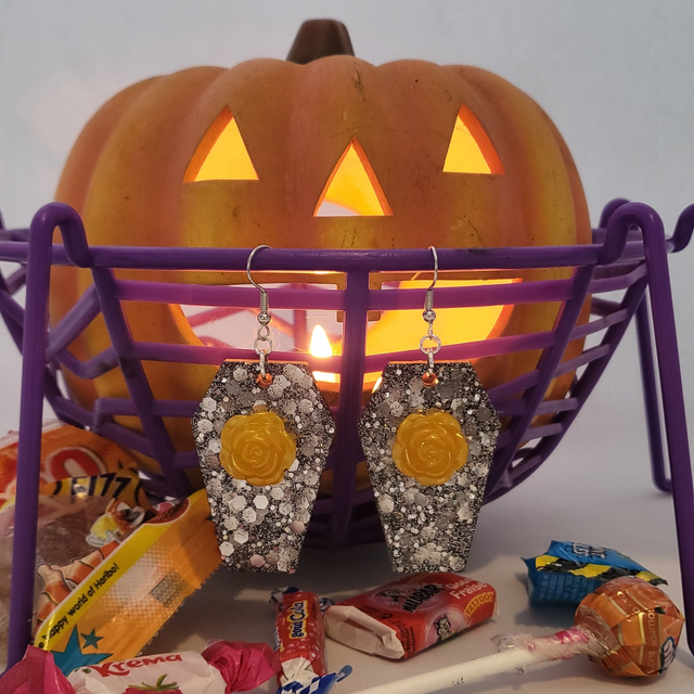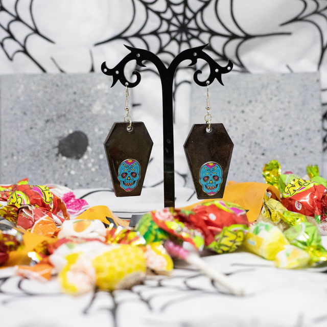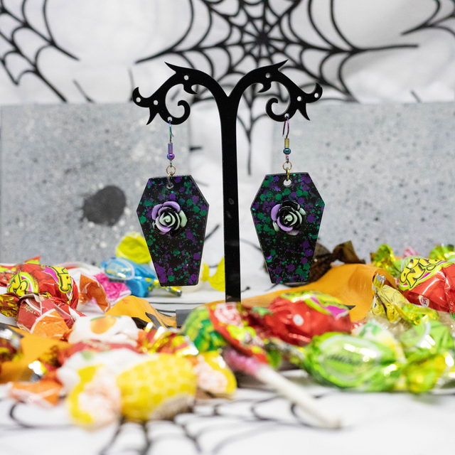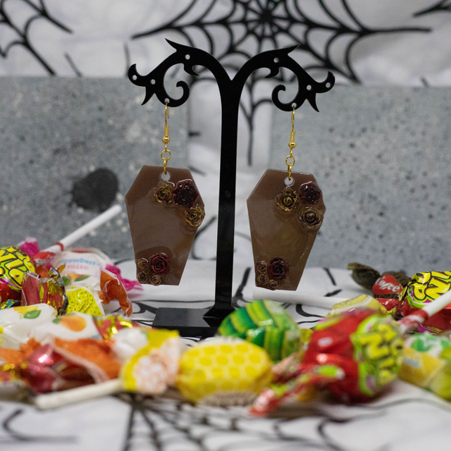 Les Boucles d’oreilles Cerceuil de La Fée Poxy sont une création artisanale.