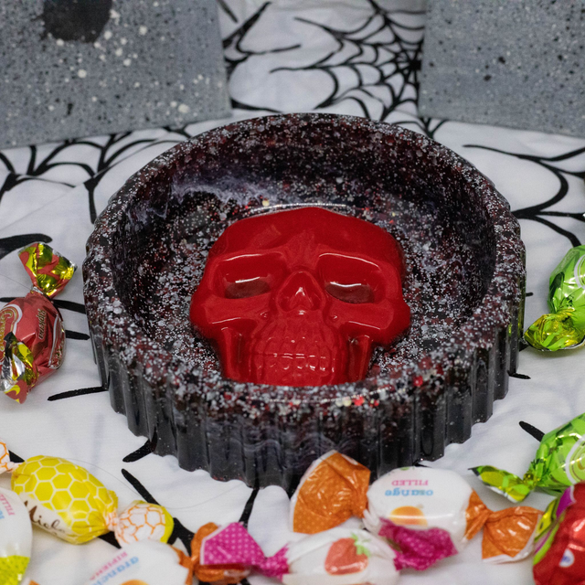 Le Cendrier Tête de Mort de La Fée Poxy est une création artisanale. Ce cendrier est idéal pour ajouter une touche originale et festive à votre espace, notamment lors de la période d'Halloween.